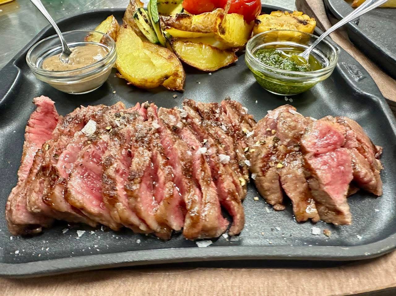 Un taglio triangolare della punta del roast beef, evidentemente marezzato con un sapore pieno, una carne con una fortesuccosita'.